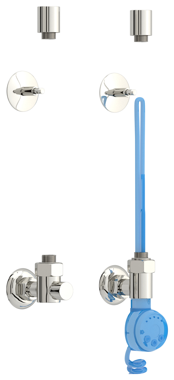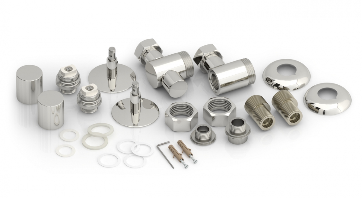 Полный комплект для комбинированного подключения с вентилем, проходным углом под установку ТЭНа и узлами для сброса воздуха