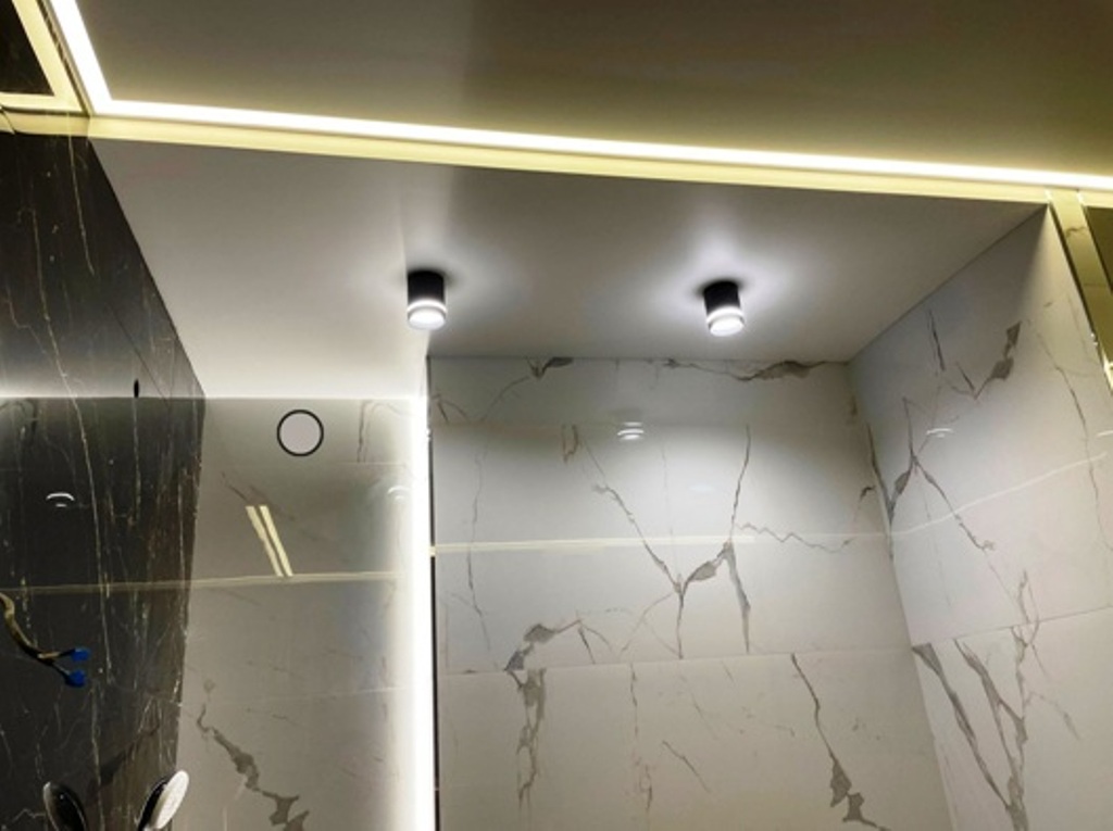 Диффузор монтируется в одной плоскости с натяжным потолком.